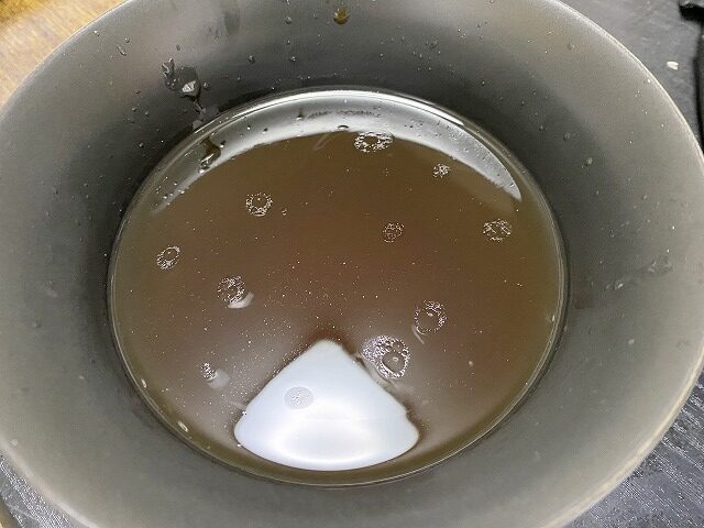 電気ケトルで沸かしたお湯300mlを液体スープに加えます。