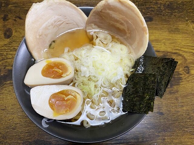 中井さんちの海苔、煮卵とネギ、そして今回はチャーシューがお買い得だったので追加しました。普段は素ラーメンでいただいているので、個人的には豪華です。